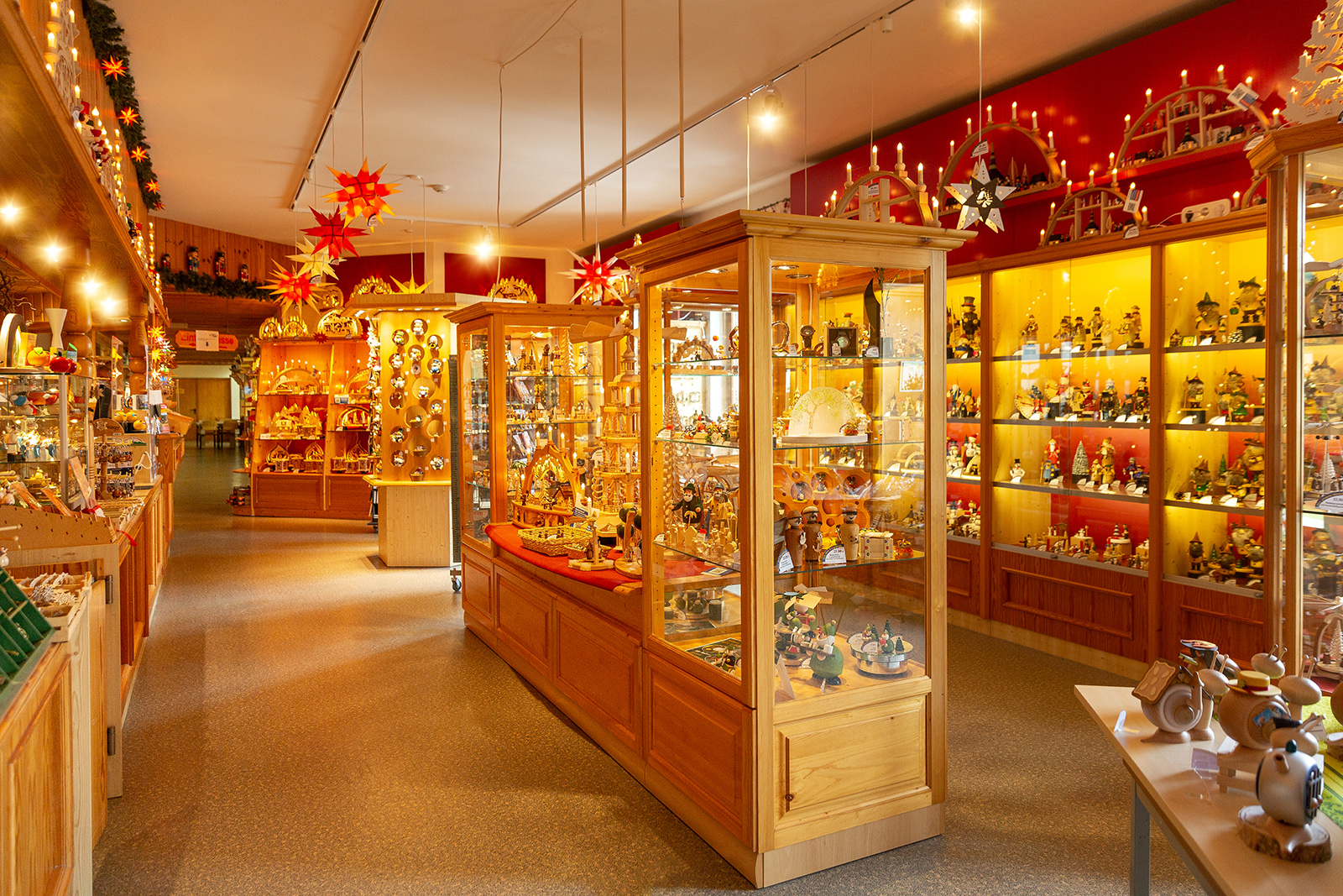 Wir bieten eine Vielfalt an Holzkunst, die jedem Geschmack, Wohnambiente und Anlass gerecht wird. Ob groß oder klein, farbig oder naturbelassen, gedrechselt oder geschnitzt, figürlich oder bewegt, stimmungsvoll beleuchtet, exklusiv oder als Geschenk - wählen Sie aus etwa 3.500 Artikeln aus unserer Holzkunst-Werkstatt sowie von ausgewählten kleinen und feinen Manufakturen im Erzgebirge.